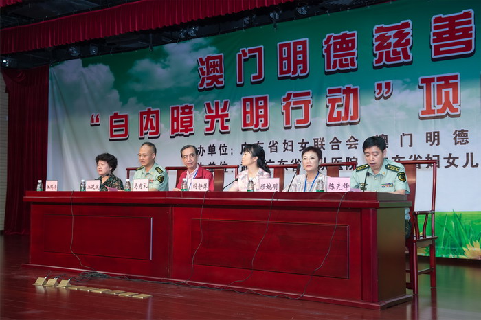 7月28日下午明德慈善會向廣東省婦女兒童基金會捐贈100萬元的“白內障光明行動”項目,在武警廣東省總隊醫院隆重舉行啓動儀式。明德慈善會會長馬有禮、理事長顏婉明一行,省婦聯常務副主席閻靜萍、副主席丘瑞清以及廣東省婦女兒童基金會人員,武警廣東總隊醫院領導和官兵員工等200余人出席。