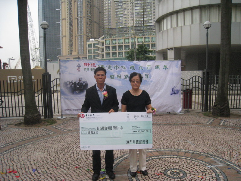 10月24日下午4時,澳門街總明德保健中心在黑沙環公園舉行成立五周年暨服務成果展活動,本會副會長吳漢疇,副理事長周向麗、羅香珠,常務理事唐兆源,理事蕭正強、梁慶銘,
