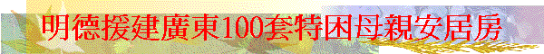 根據廣東省關於扶貧工作的要求,切實改善欠發達地區貧困婦女家庭住房條件。明德慈善會2012年支持廣東省婦聯、省婦女兒童基金會援建「母親安居房」計劃,捐贈人民幣100萬元幫助修建的100套單親特困母親安居房,目前已有99戶建成並喜遷新居。